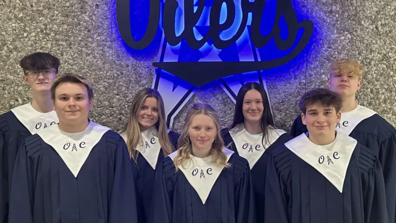 The Pennsylvania Music Educators Association District 3 Chorus Festival was held last month at Brockway High School. Participating students from Oil City High School included (from left) Heath Warner, bass 2, Carson Foster, tenor 2, Shayla Hanlon, alto 2, Isabella Vorse, soprano 2, Madelyn Garland, alto 1, Chayce Whittemore, tenor 2 and Bryce Davis, bass 2. Schools from across Venango, Forest, Clarion, Jefferson, Armstrong and Indiana counties participated, forming a 180-member chorus. Vorse and Garland will represent OCHS at the PMEA Region II Chorus festival this weekend at DuBois Area High School.